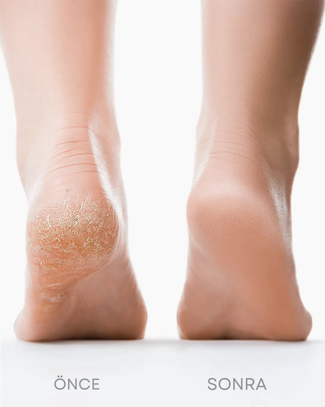 Topuk çatlakları, sertleşmiş deri ve pürüzlü görünüm artık sorun değil.